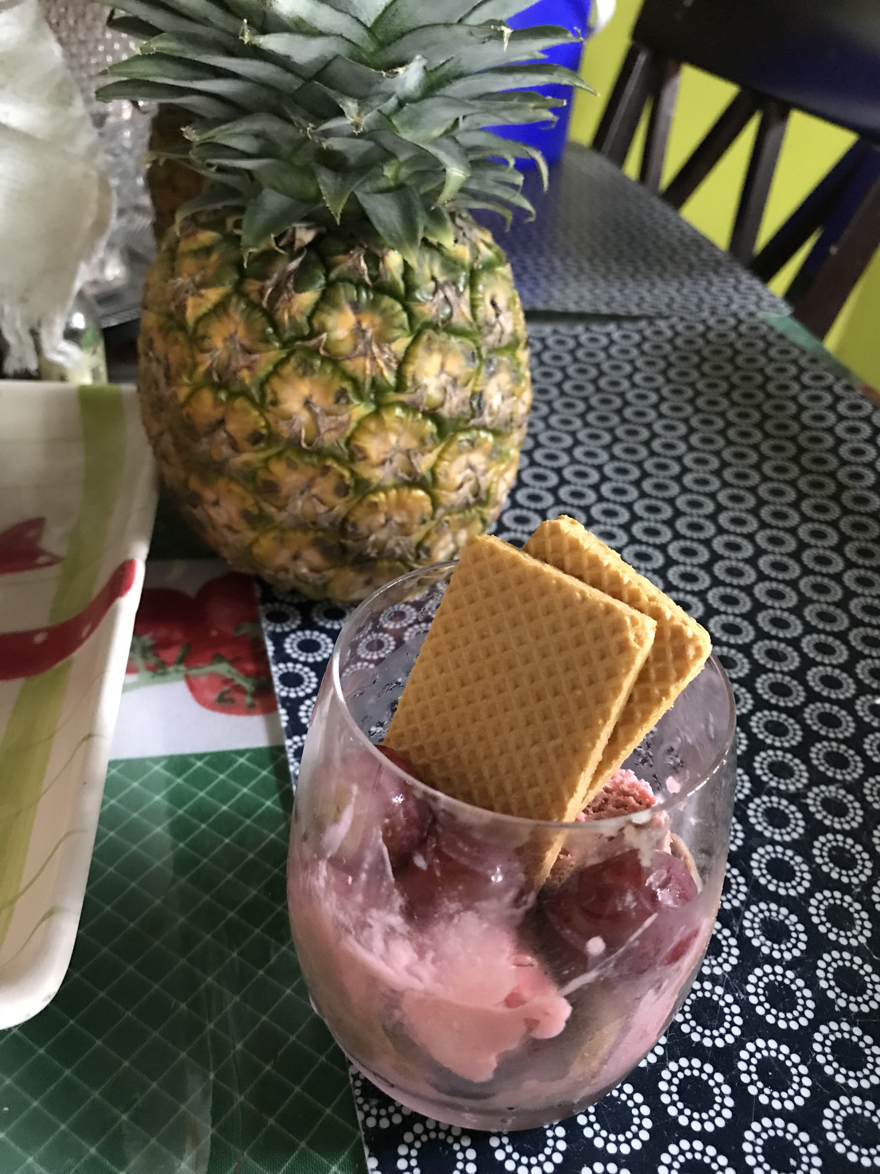- Chicha: this is juice. It is very popular to try and cool off because it is refreshing. It is made with any old fruit you find. My favorite is Guanabana but my host mom likes to try different combos of fruit and I haven’t been disappointed yet. I recently found out the difference in Chicha and Jugo is the previously explained raspadura.